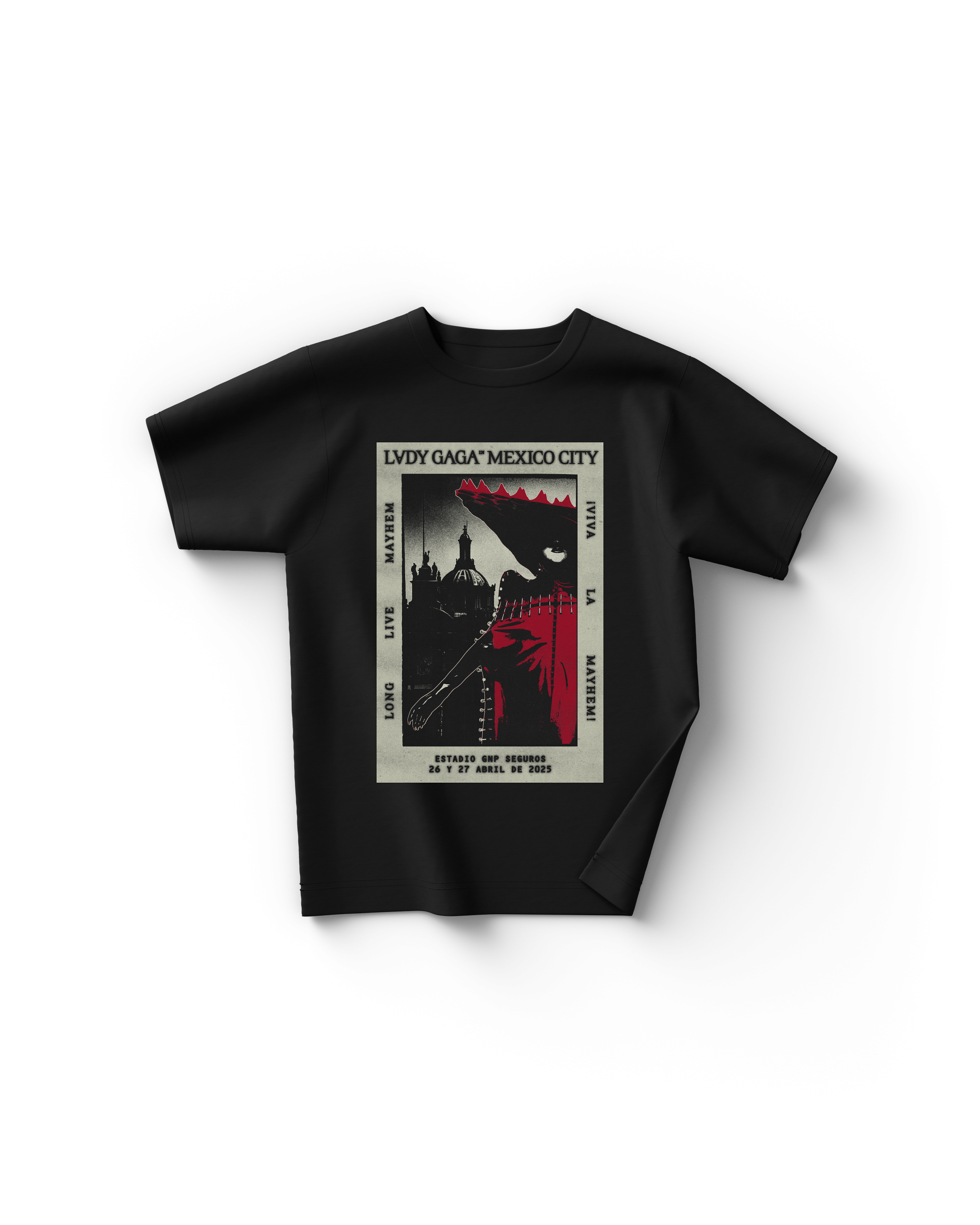 Schwarzes CDMX Poster T-Shirt mit Druck auf der Vorderseite.