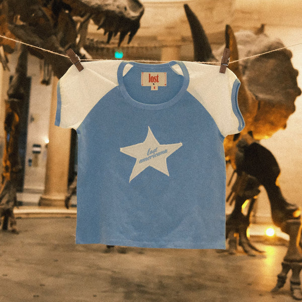 Cremefarbenes abgeschnittenes Tank mit Siebdruckgrafik auf der Vorder- und Rückseite.