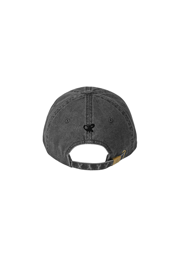Schwarze Distressed Cap mit gestickter "Dad idea right?" Grafik