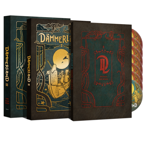Die erweiterte Deluxe Edition vereint insgesamt 7 CDs in der Clamshell-Box – 1x das DÄMMERLAND-Album mit 16 Songs, dazu das komplette Hörspiel mit über 6,5h Spieldauer auf 6 weiteren CDs. Auch visuell ein echter Hingucker, gibt’s obendrein einen Voucher mit dem Download-Link fürs digitale Hörspiel.