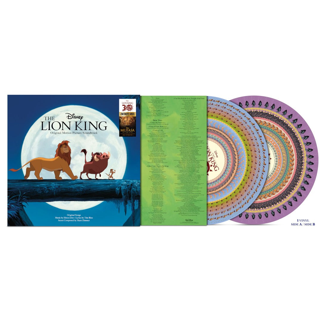 Celebrate the 30th anniversary of Disney’s The Lion King with the music from the film, for the first time on zoetrope vinyl. Watch the characters from the film come to life while listening to iconic songs including “Circle of Life,” “I Just Can’t Wait to be King,” “Hakuna Matata,” “Can You Feel the Love Tonight” and so much more!