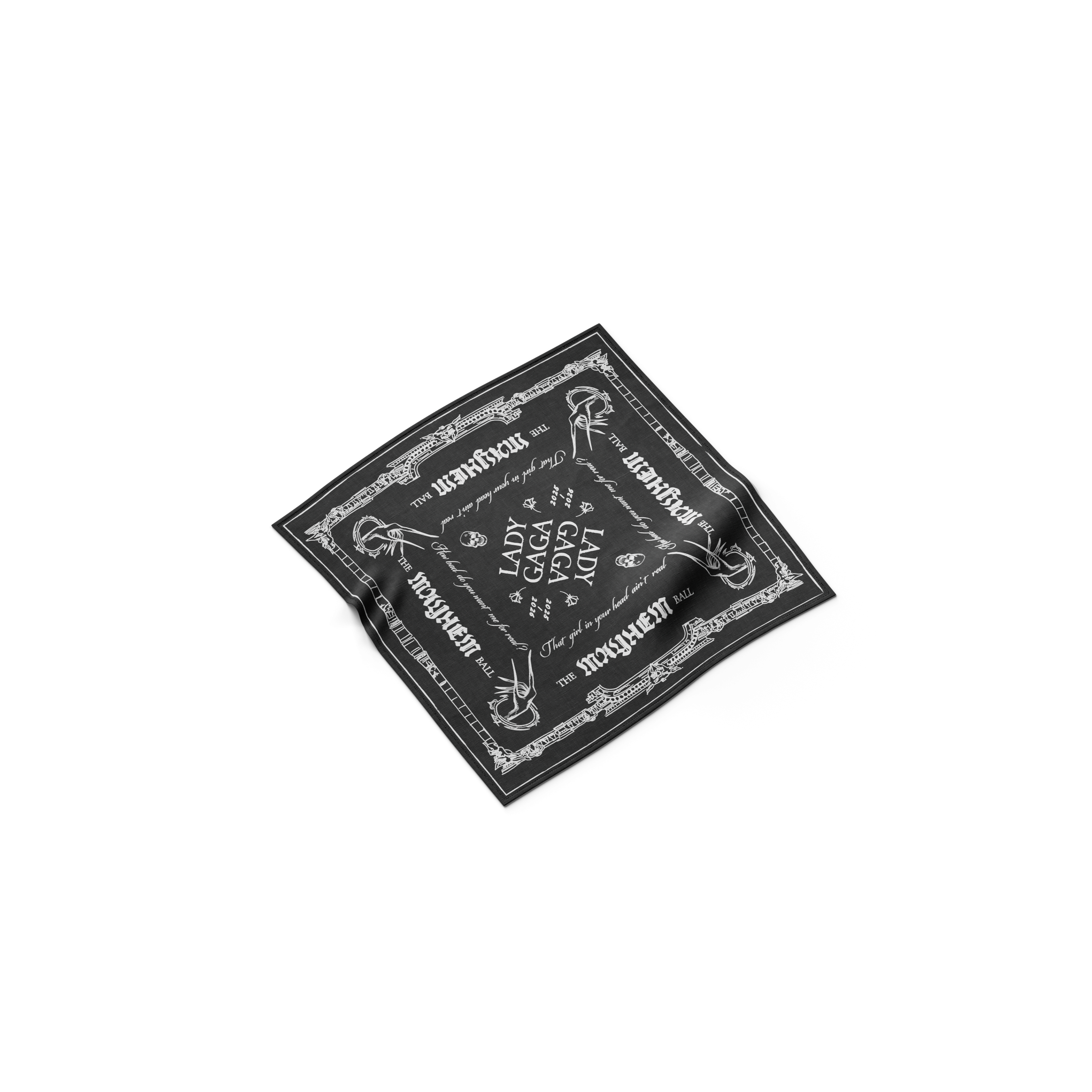 Schwarzes MAYHEM Bandana mit aufgedruckter Grafik.