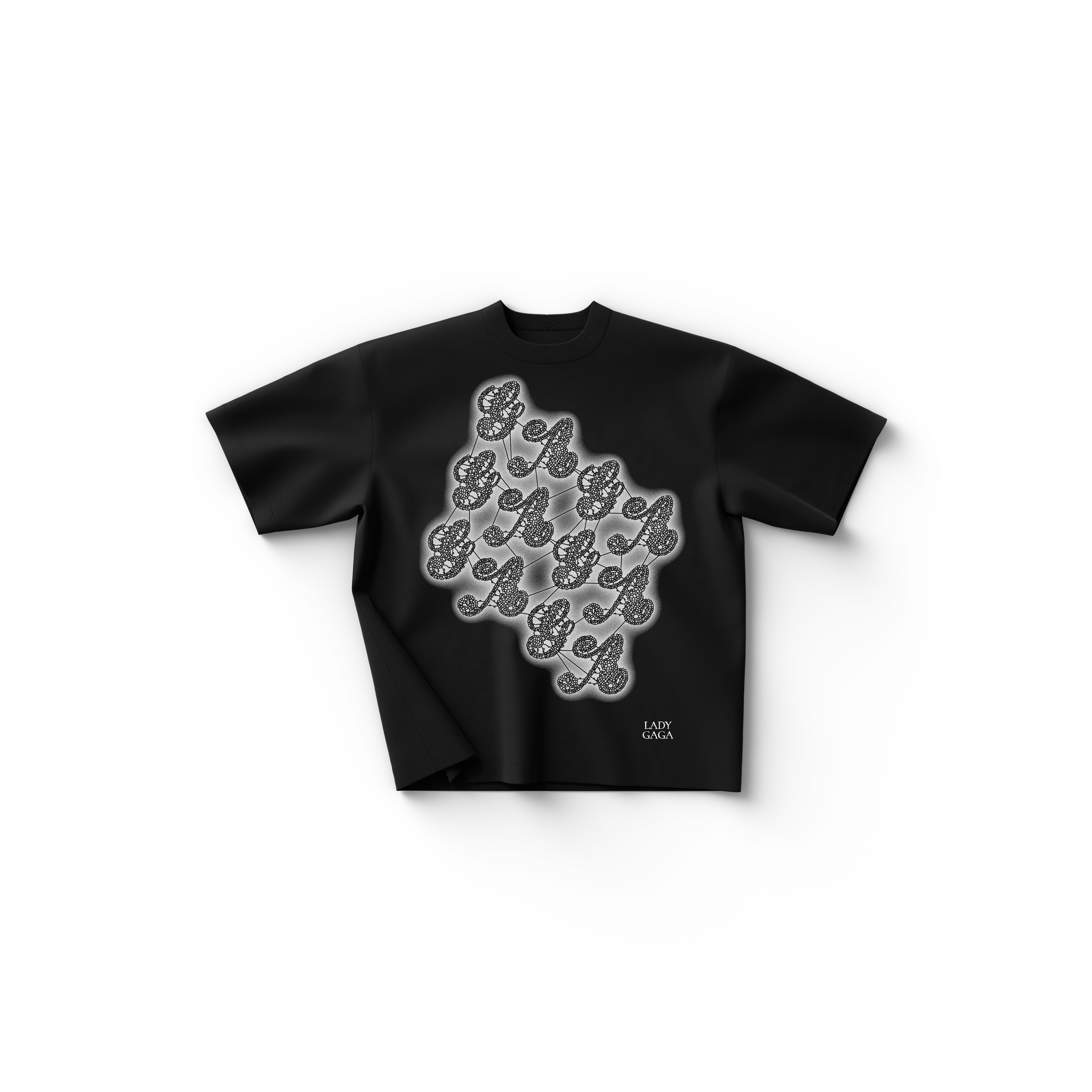 Lace Gaga T-Shirt mit Siebdruckgrafik auf Vorder- und Rückseite.